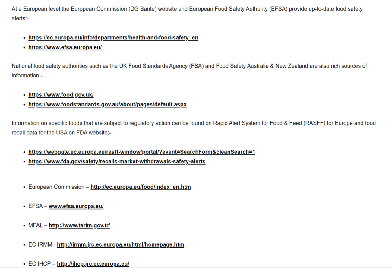 At a European level the European Commission (DG Sante) website and European Food Safety Authority (EFSA) provide…